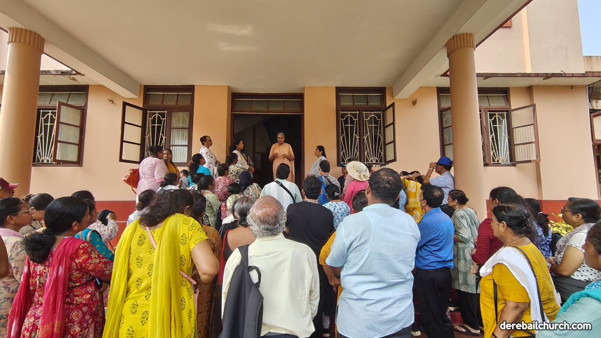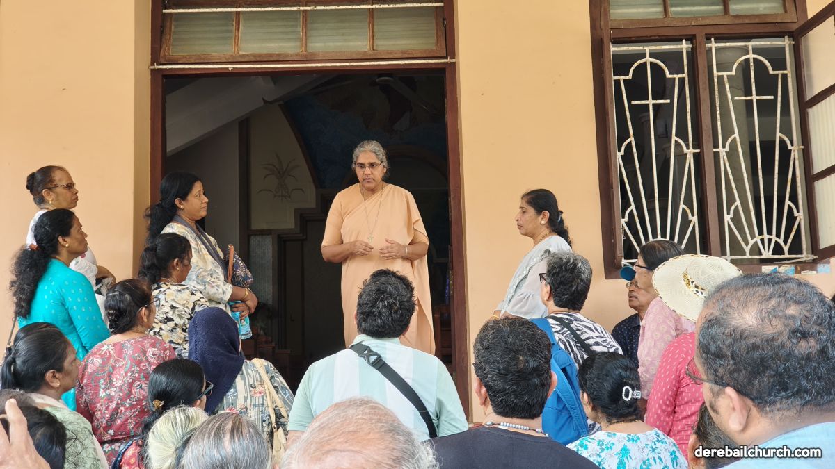 The pilgrims started their journey at 6.15 AM from Derebail Church and boarded the 7.20 AM train to Kannur. At the onset, Rev. Fr. Kevin led the group into prayer, seeking God's presence and blessings throughout the day and on their journey. They arrived at Kannur railway station at 9.45AM, from where they proceeded to Sr. Maria Celine's Ursuline Chapel and Mother Petra's Convent, both in Kannur. There they celebrated the Holy Eucharist with Fr. Kevin as the celebrant, followed by a fellowship meal. Later, the group toured the convent's museum, taking time to reflect on the contributions of the Ursuline community in that region.