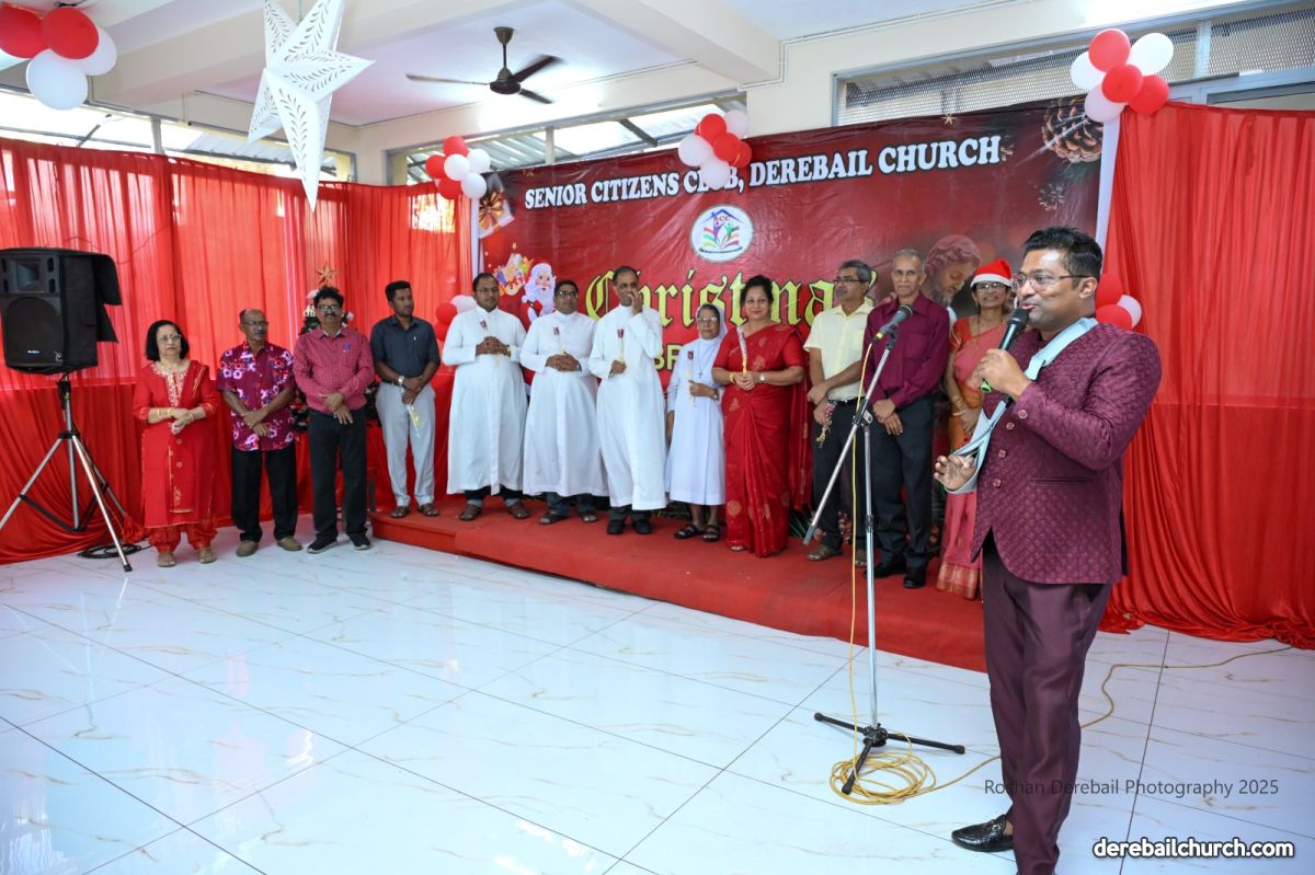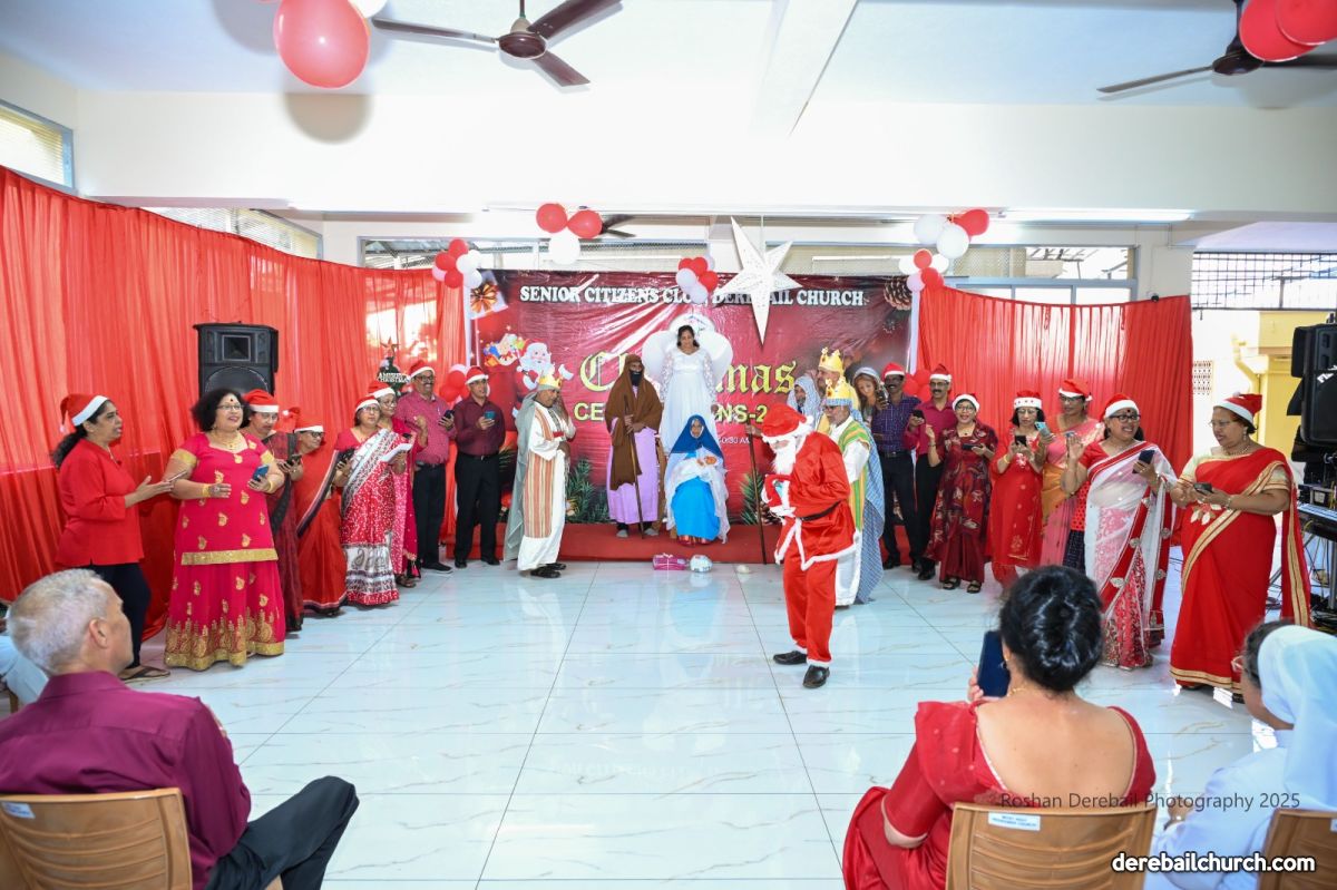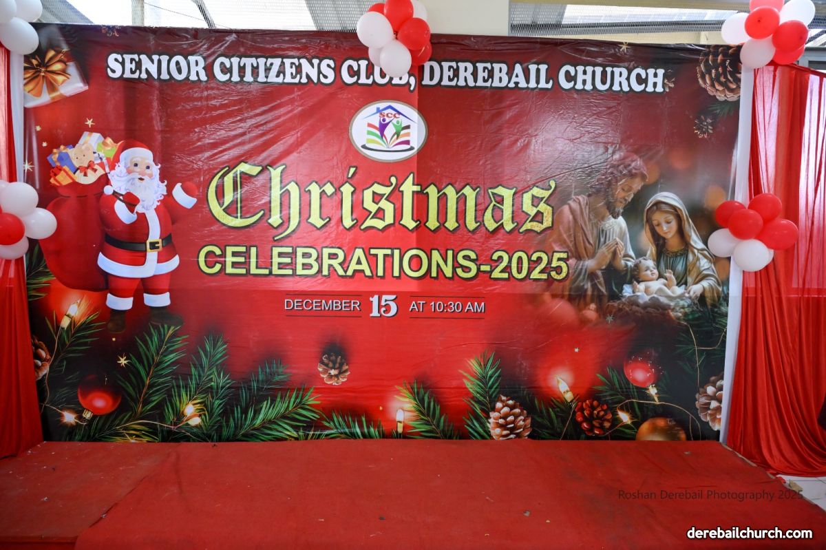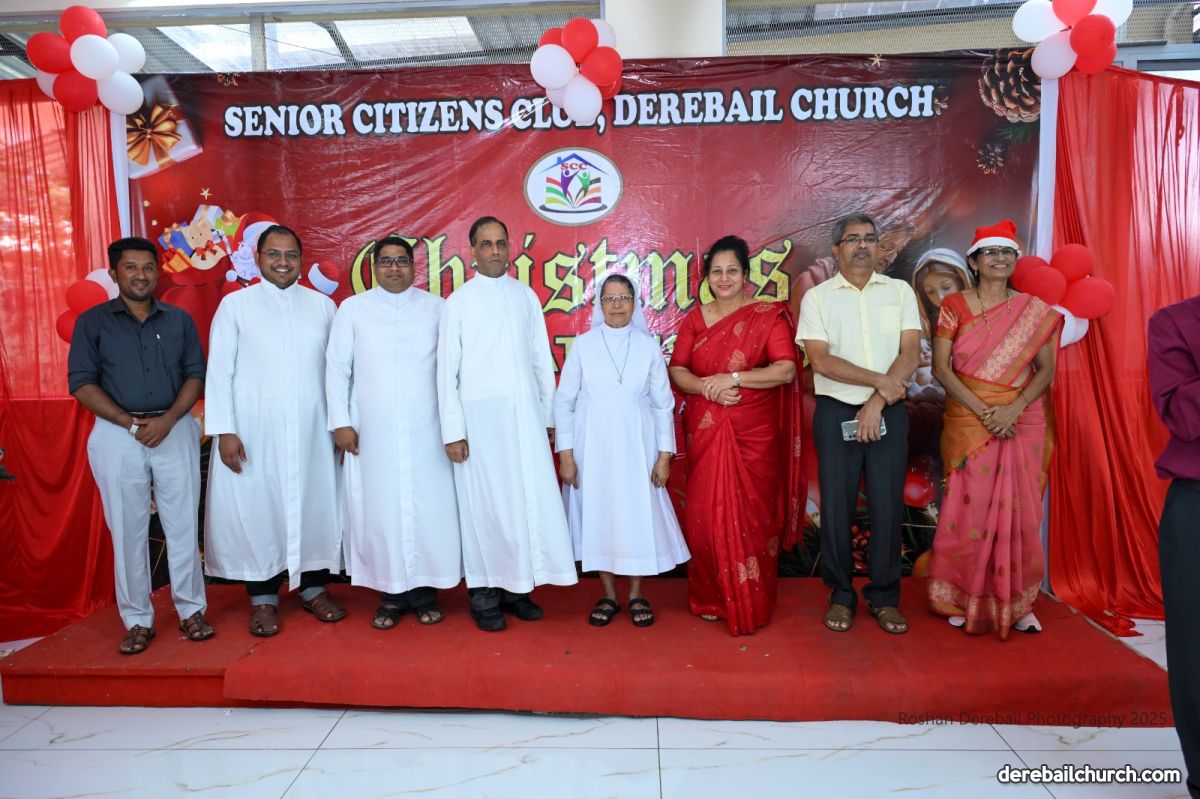 The Senior Citizens Club of the Most Holy Redeemer Church, Derebail, got together for Christmas Celebrations 2025 with great fervor on 15 December2025. The event began with a Thanksgiving Mass, concelebrated by Rev. Fr. Joseph Martis, Parish Priest; Rev. Fr. Steevan Nelson Peris, Associate Parish Priest and Rev. Fr. Kevin L. D'Souza, former Associate Parish Priest and current Director of Kripa Sadhana, Bajpe.