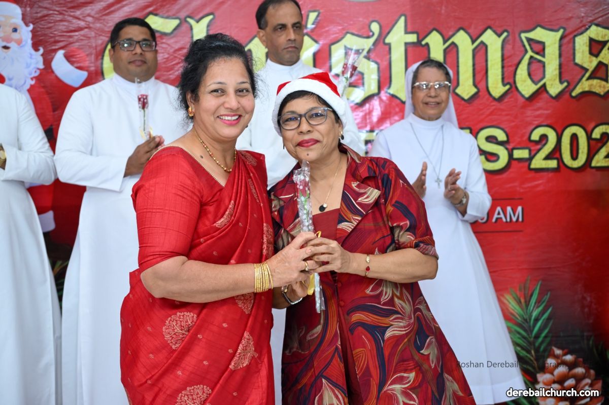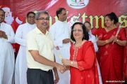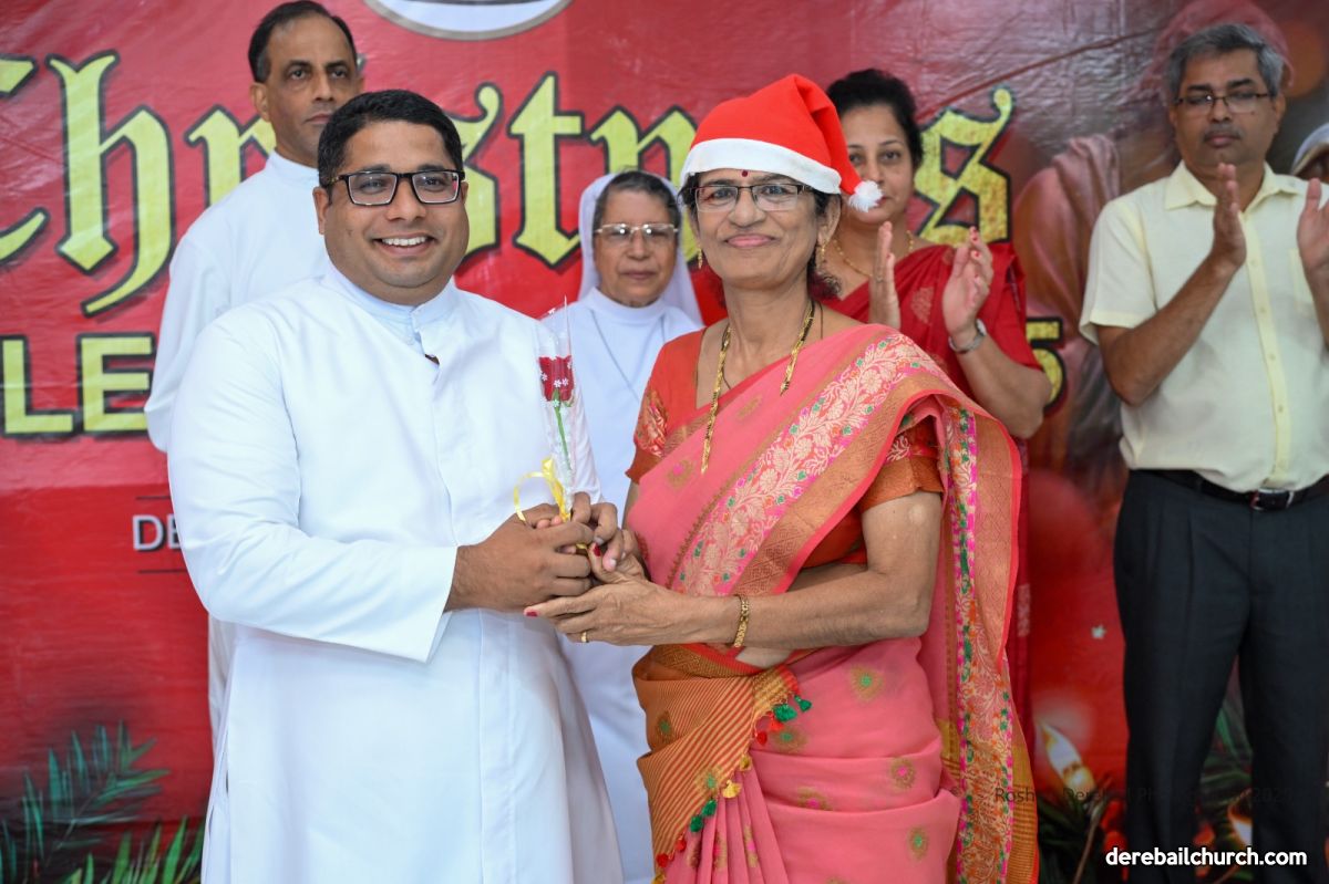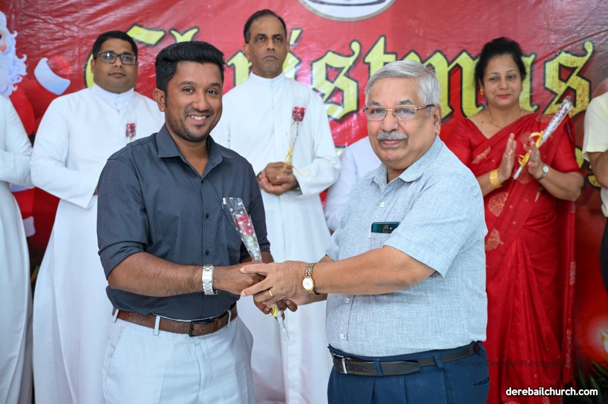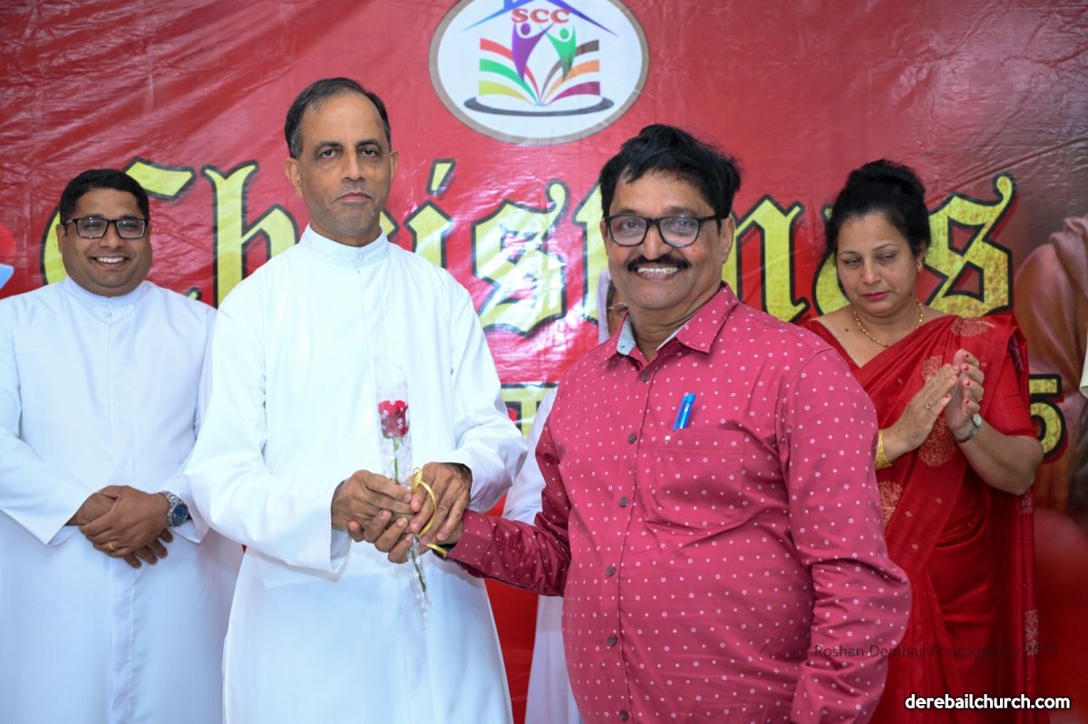The celebrations continued in the Church Basement Hall, with a stage programme that included a prayer, group Christmas carol singing, and a group dance by the members. SCC President welcomed the invited guests and the Executive Committe Members honored them with roses. Rev. Fr. Joseph Martis lit the decorative Christmas tree and addressed the gathering, sharing a humorous message on leading a tense-free life.