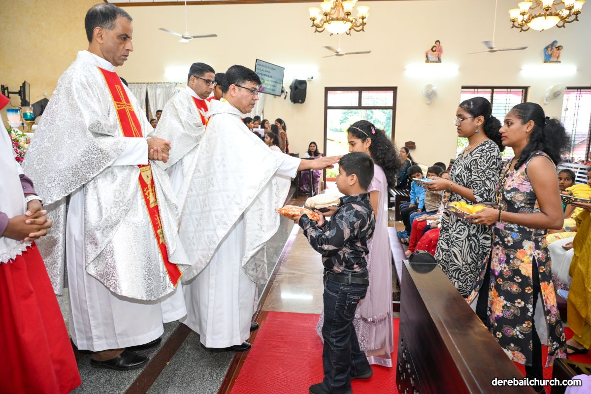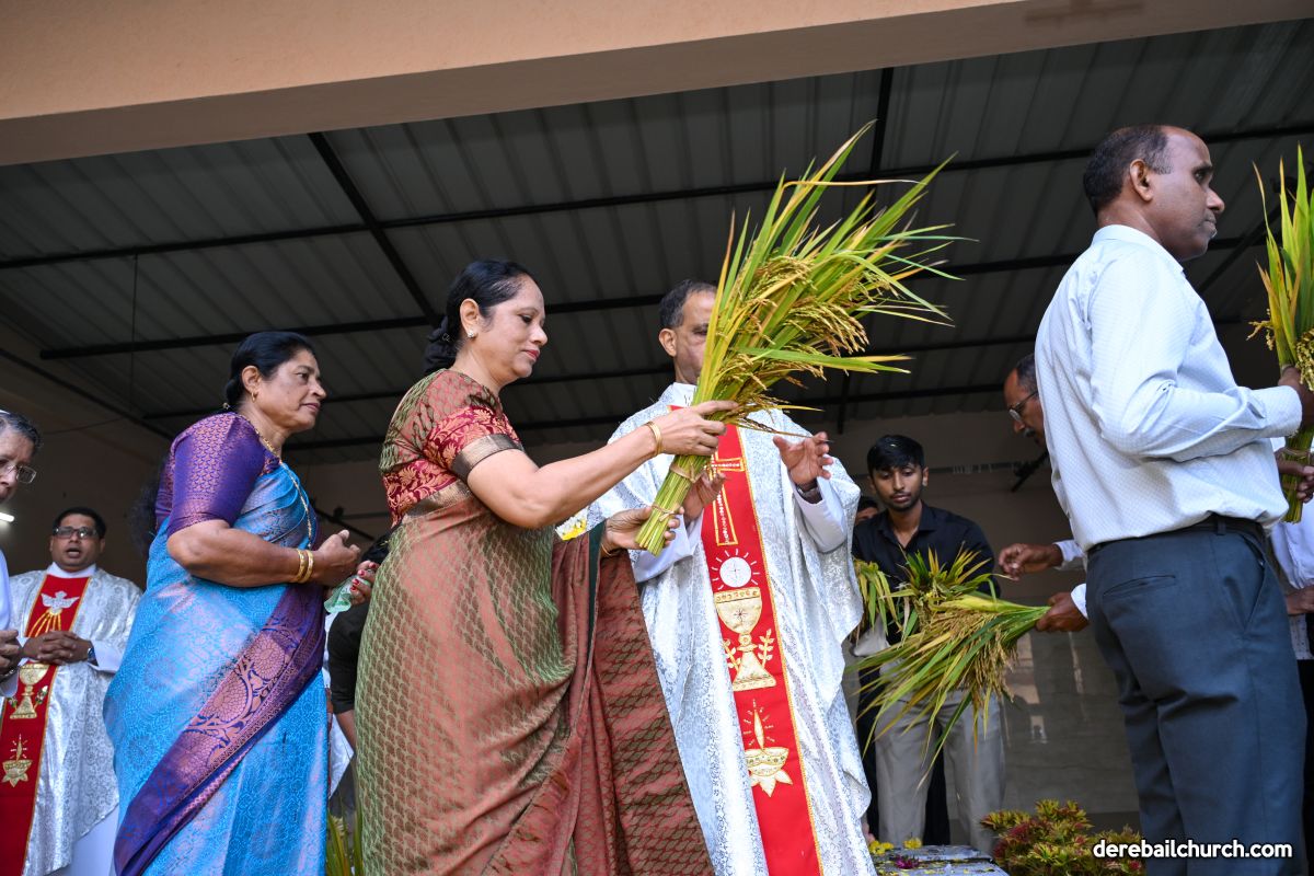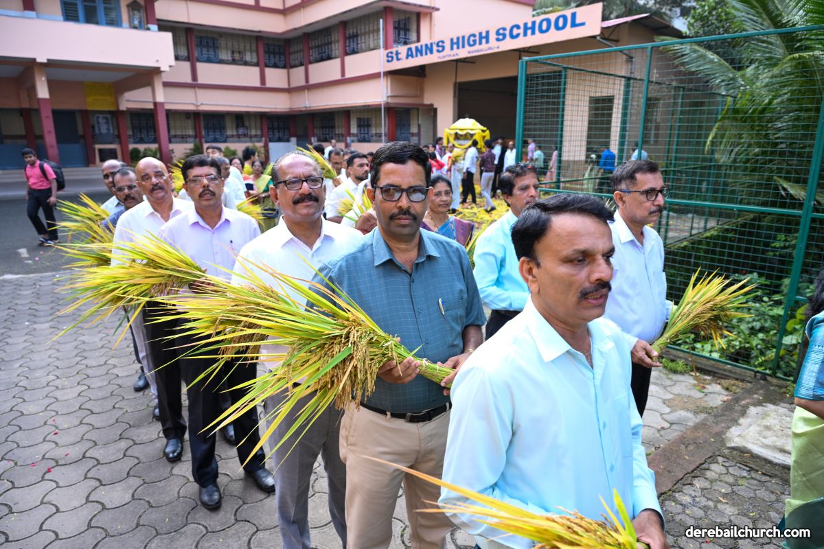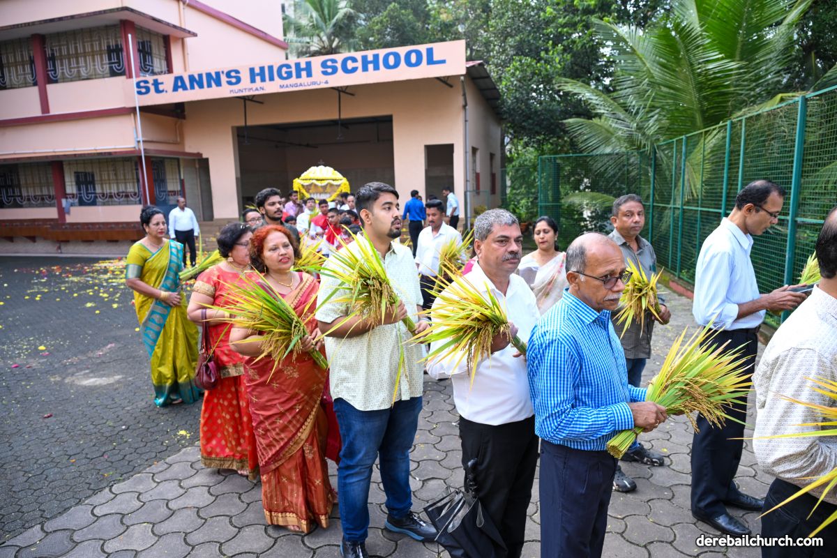 On 8th September, 2025 the celebration commenced at 7.30 am in front of St Ann's English Medium School, Kuntikan, with the blessing of the newly harvested corn. This was followed by a ceremonial procession to the church, with little children strewing flowers all along the way. The statue of infant Mary was brought in this procession to the church along with the newly harvested corn and with the music of the brass band.