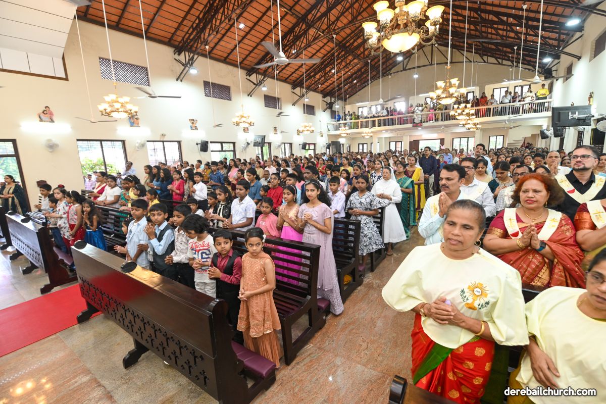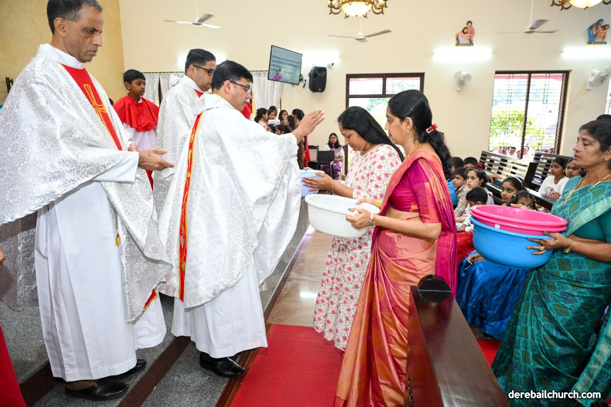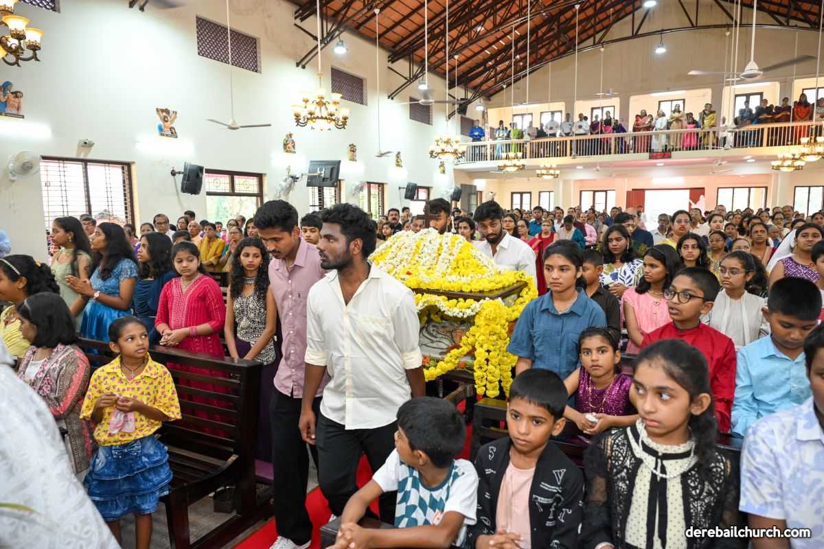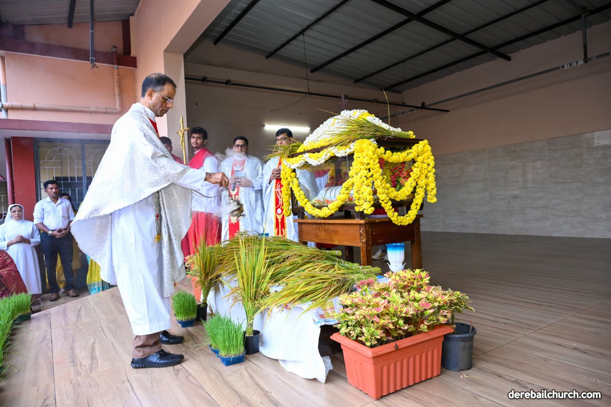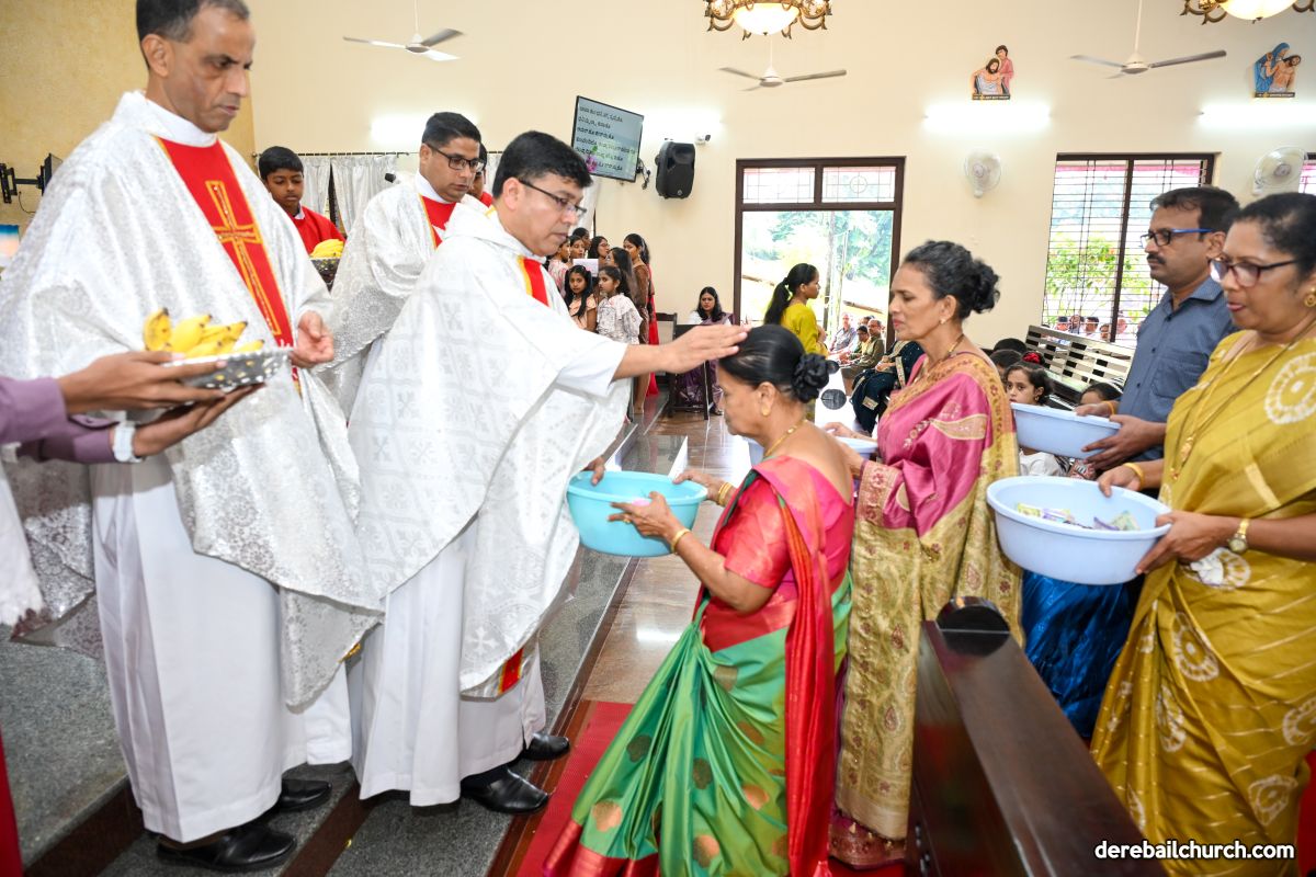The feast of Nativity of Mother Mary was celebrated with devotion and grandeur at Most Holy Redeemer Church Derebail. In preparation for this feast the parishioners- young, old, especially little children- participated in the nine-days novena, offering flowers to Mother Mary with love and reverence.
