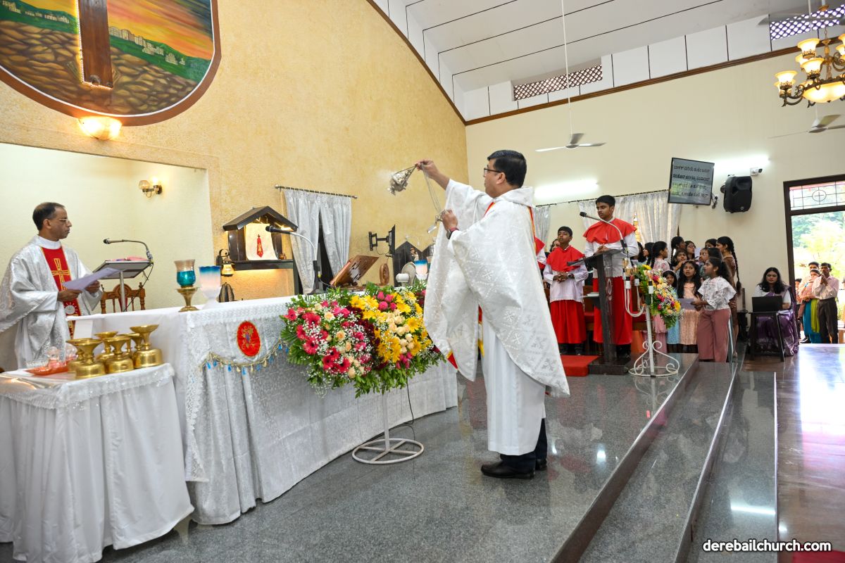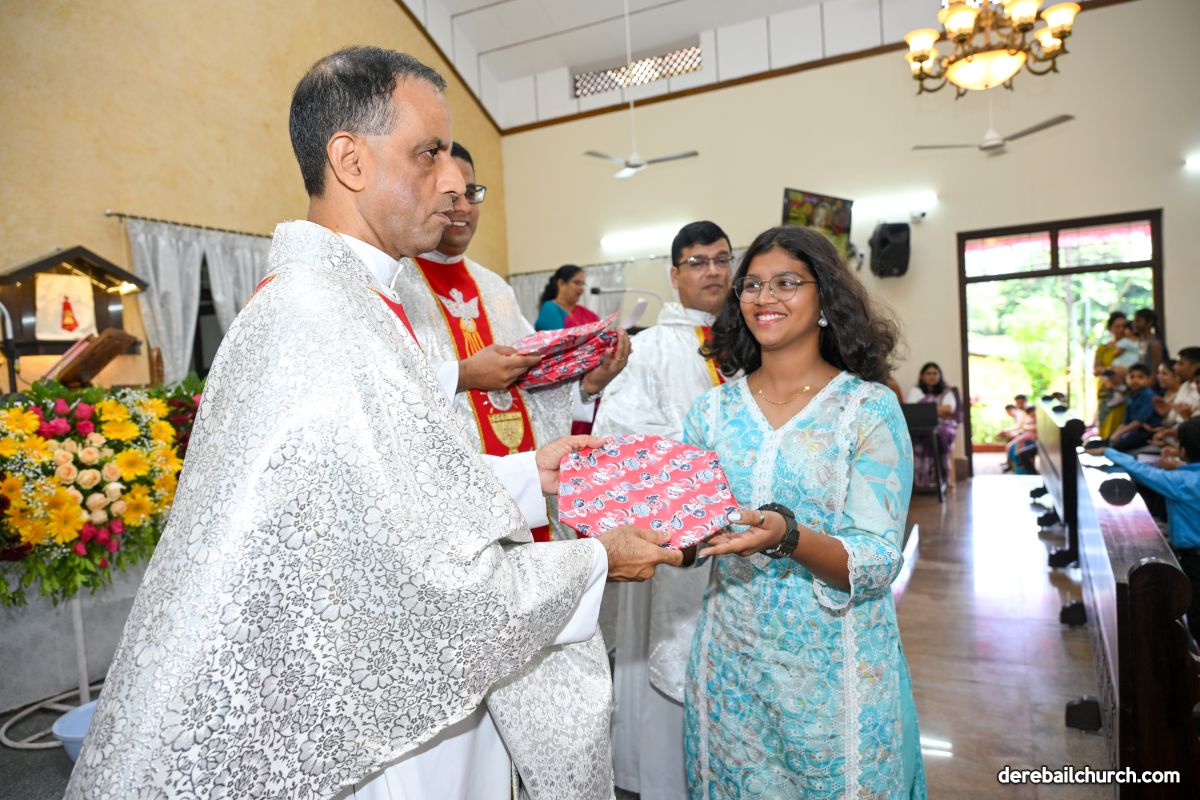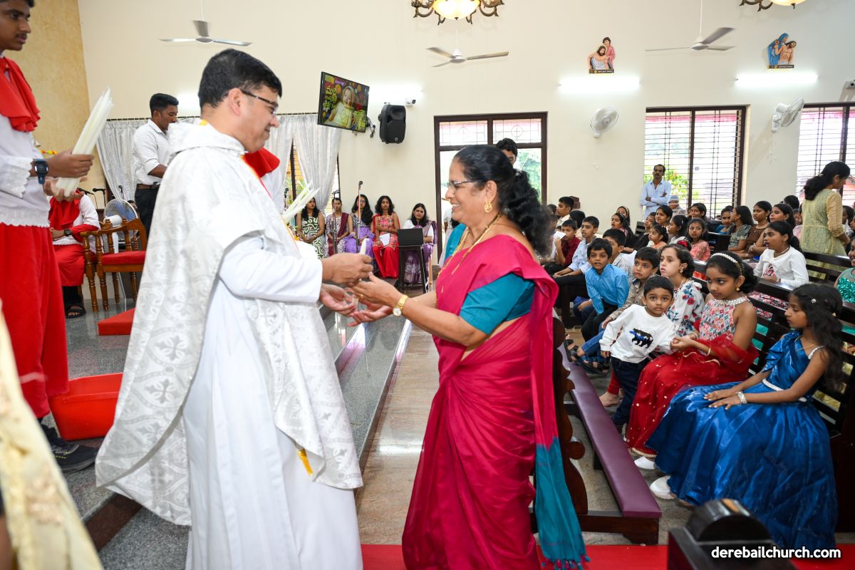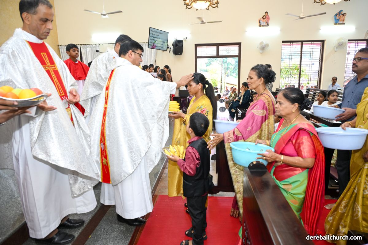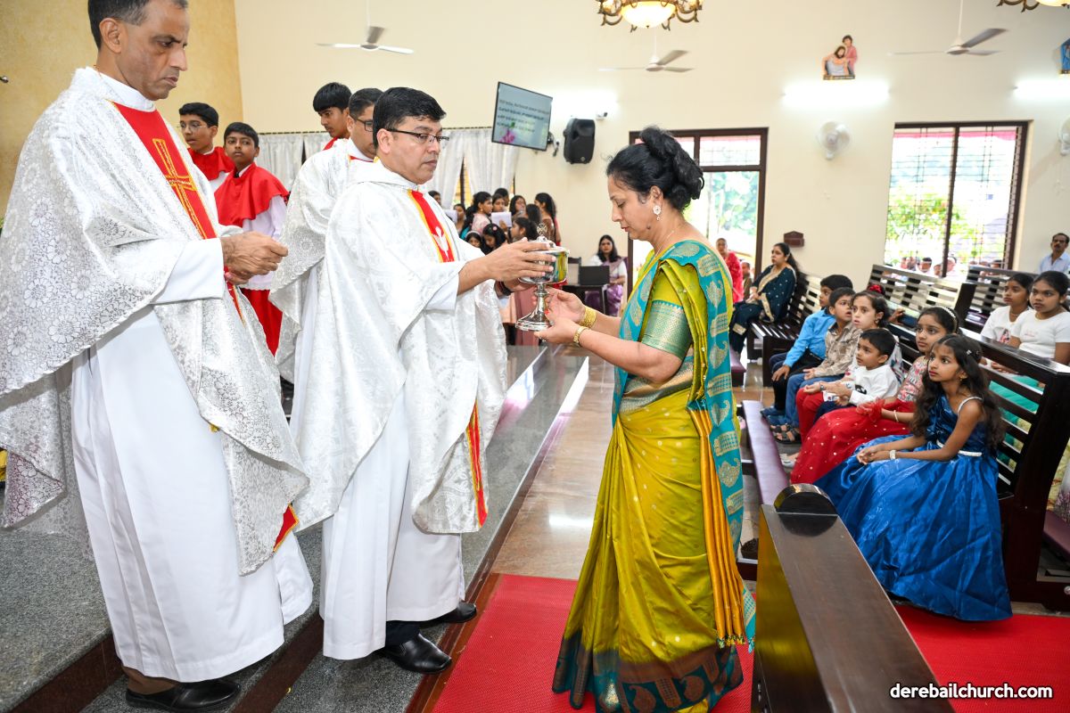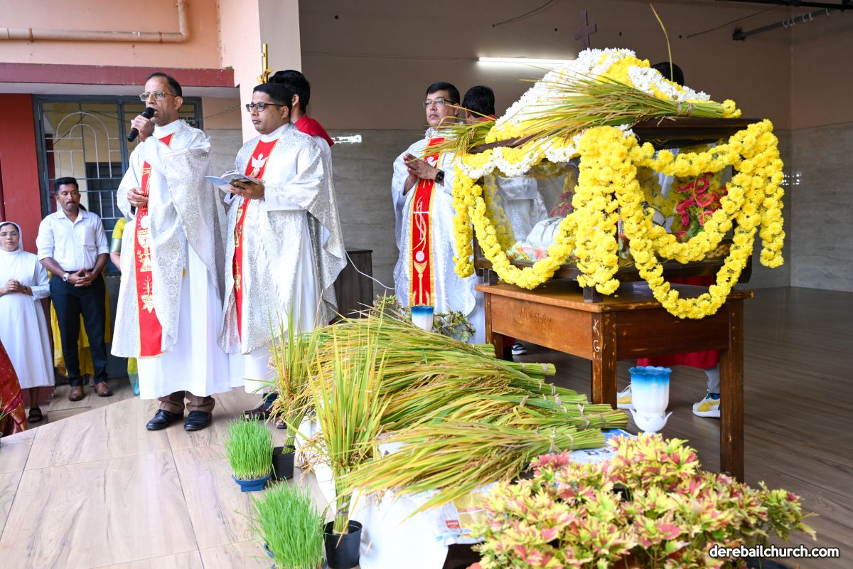 The feast of Nativity of Mother Mary was celebrated with devotion and grandeur at Most Holy Redeemer Church Derebail. In preparation for this feast the parishioners- young, old, especially little children- participated in the nine-days novena, offering flowers to Mother Mary with love and reverence.
