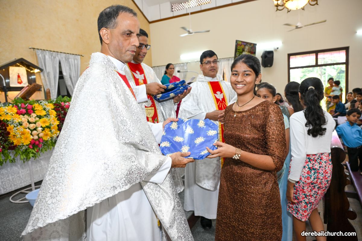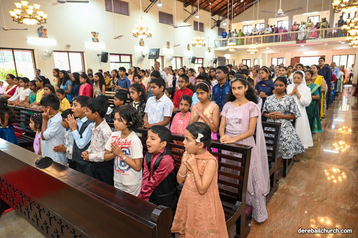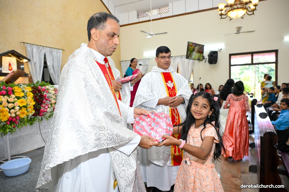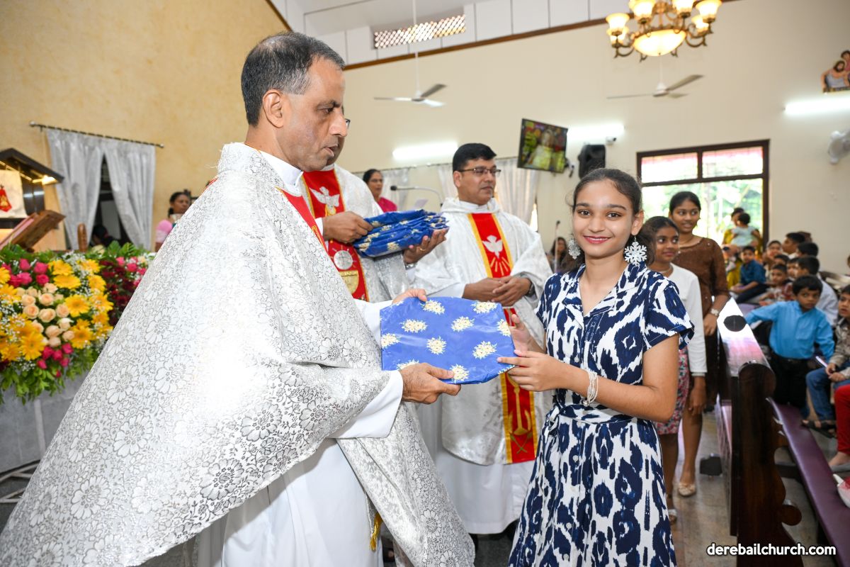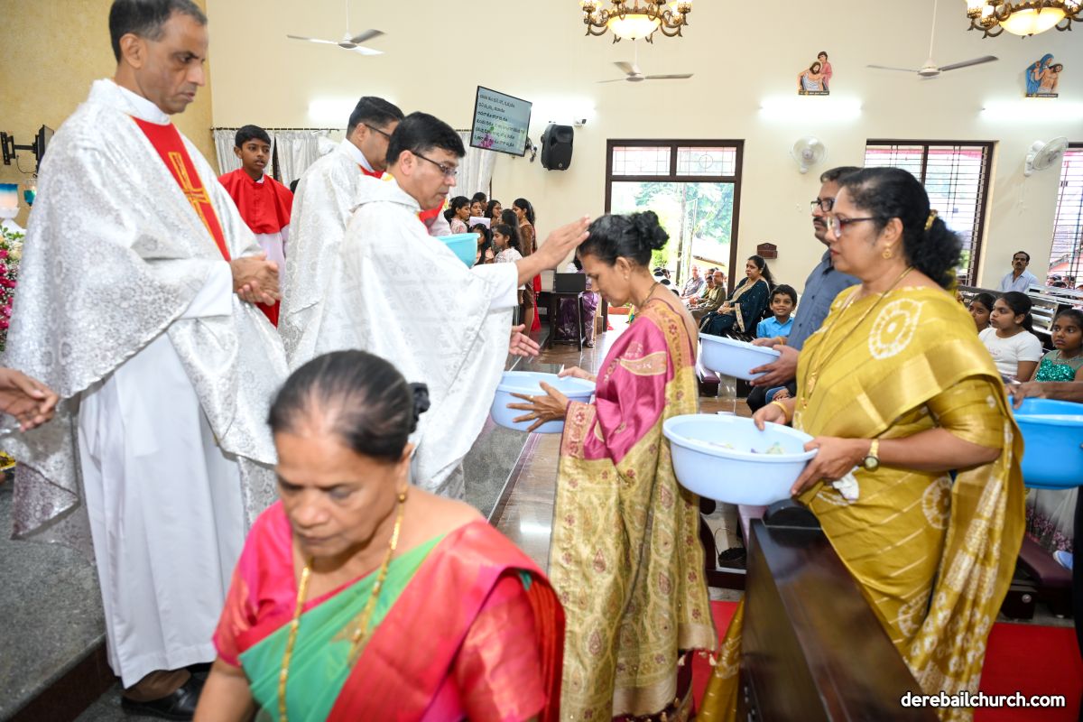 The feast of Nativity of Mother Mary was celebrated with devotion and grandeur at Most Holy Redeemer Church Derebail. In preparation for this feast the parishioners- young, old, especially little children- participated in the nine-days novena, offering flowers to Mother Mary with love and reverence.