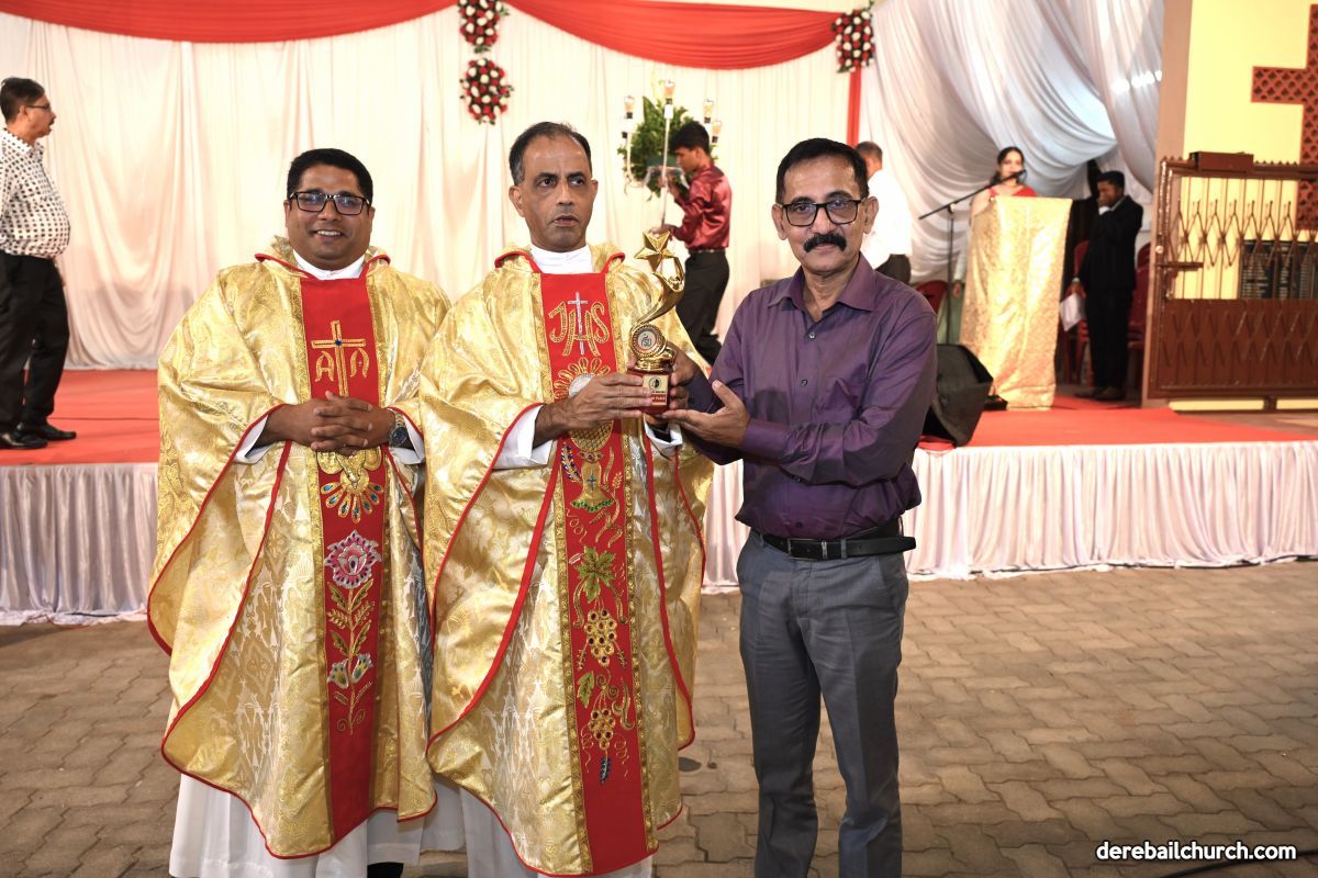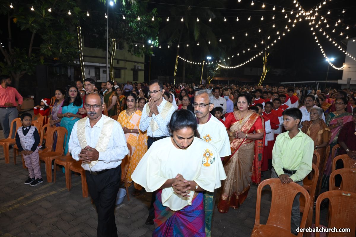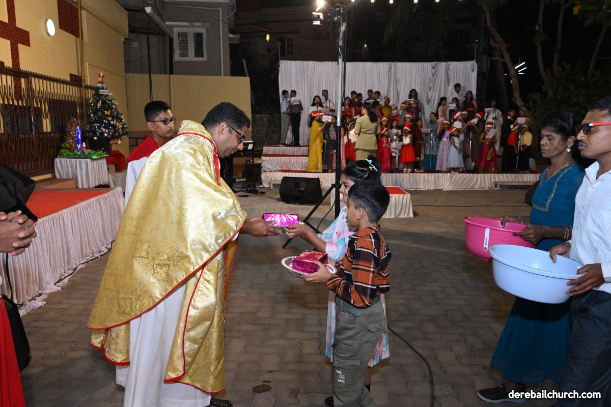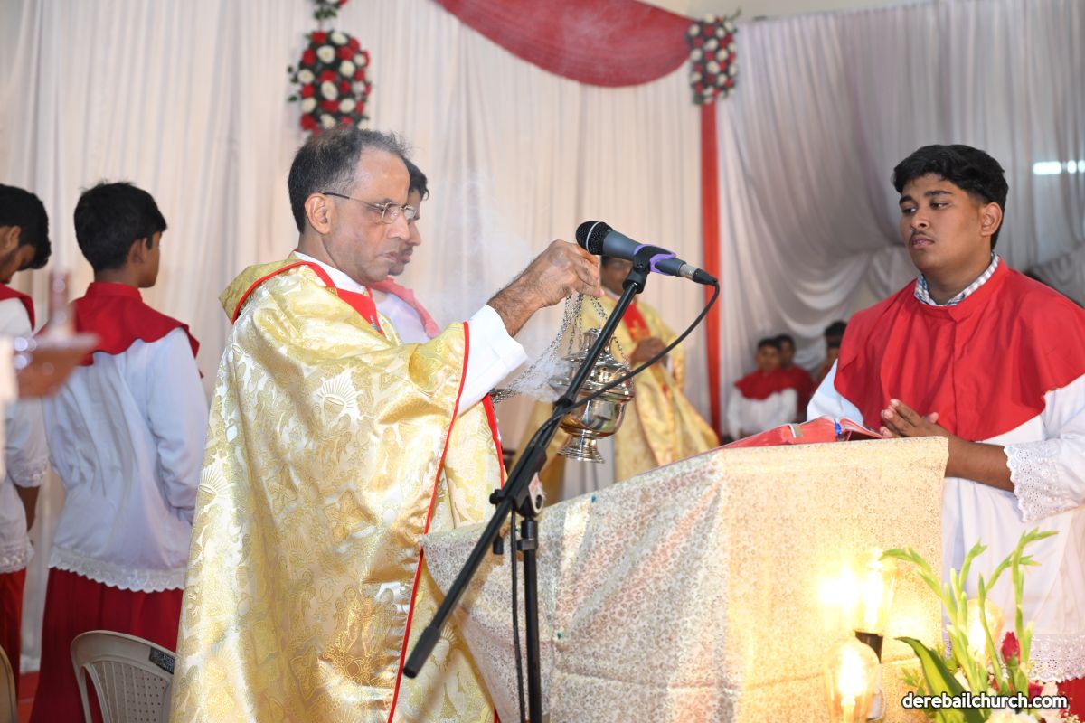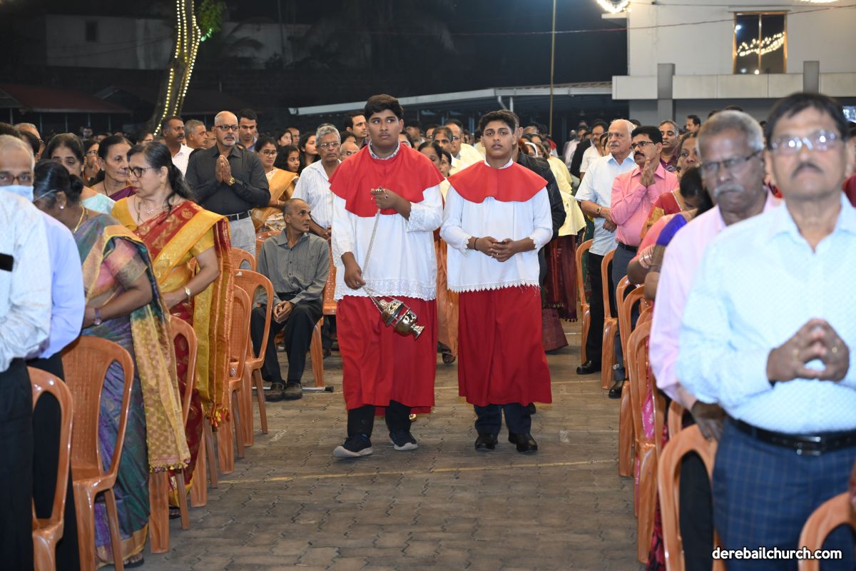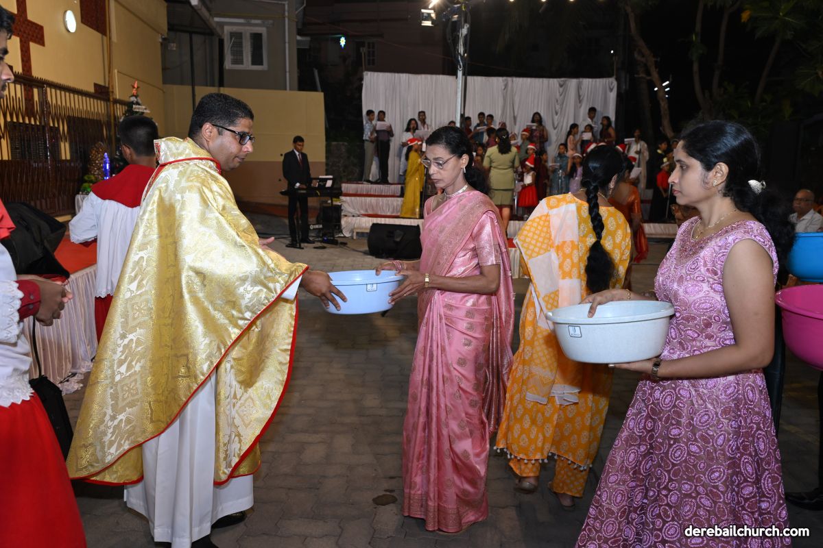On Christmas Eve 2025, the faithful of Derebail Parish gathered on the church grounds at 6:30 p.m. to celebrate the Holy Eucharist. The ceremony began with a soulful rendition of carols by the senior, youth, and children’s choir. Their collective voices served as a symbolic welcome for the birth of Christ, preparing the liturgy to follow.