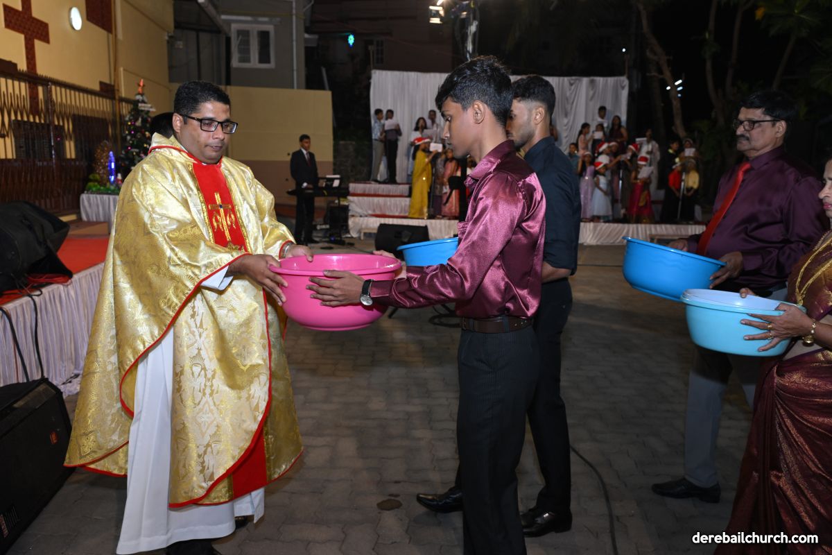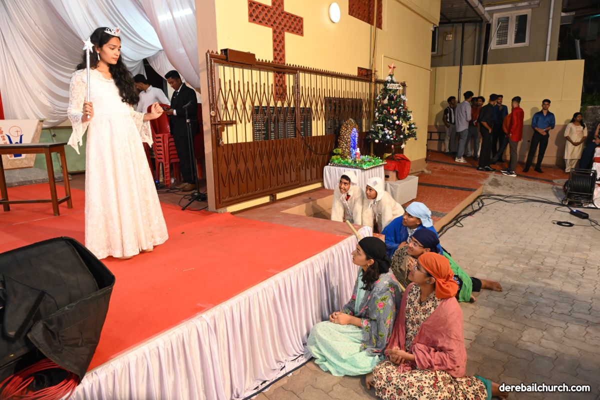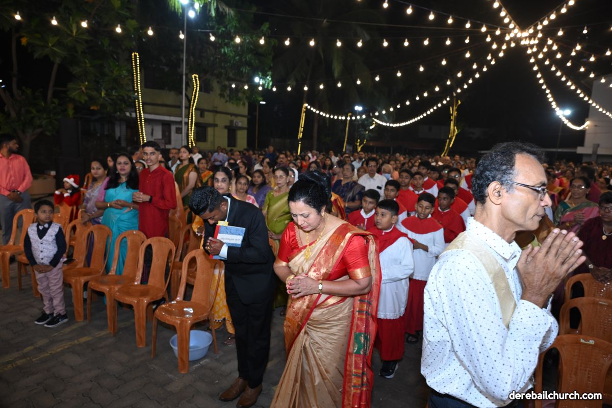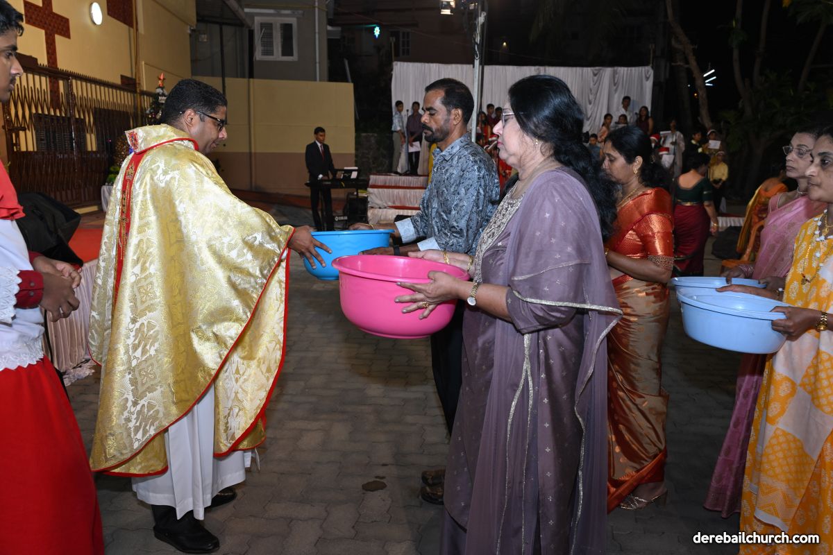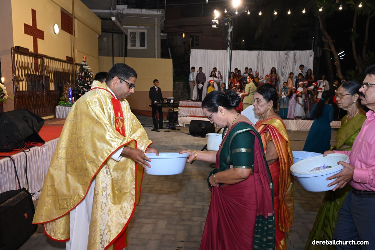 On Christmas Eve 2025, the faithful of Derebail Parish gathered on the church grounds at 6:30 p.m. to celebrate the Holy Eucharist. The ceremony began with a soulful rendition of carols by the senior, youth, and children’s choir. Their collective voices served as a symbolic welcome for the birth of Christ, preparing the liturgy to follow.