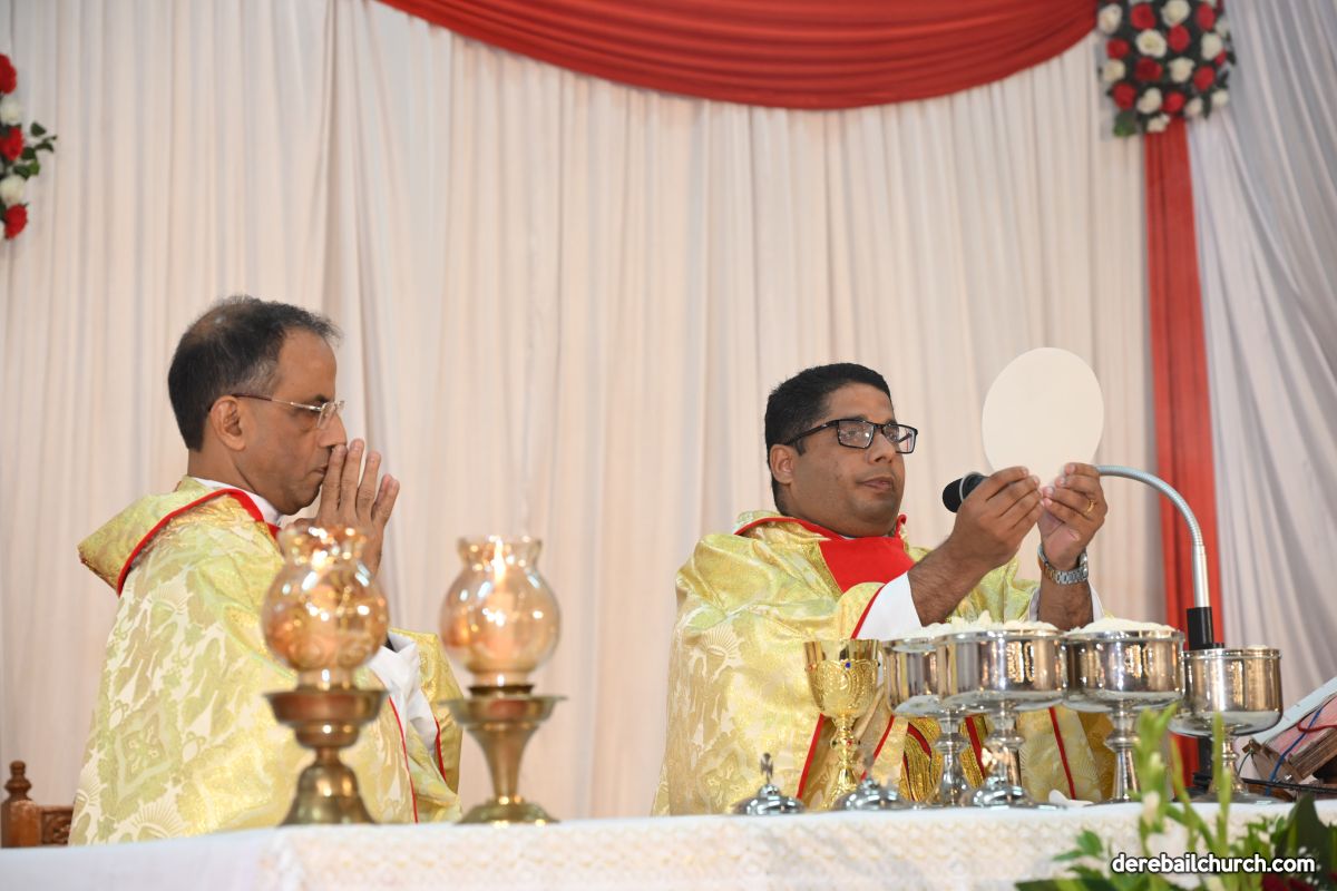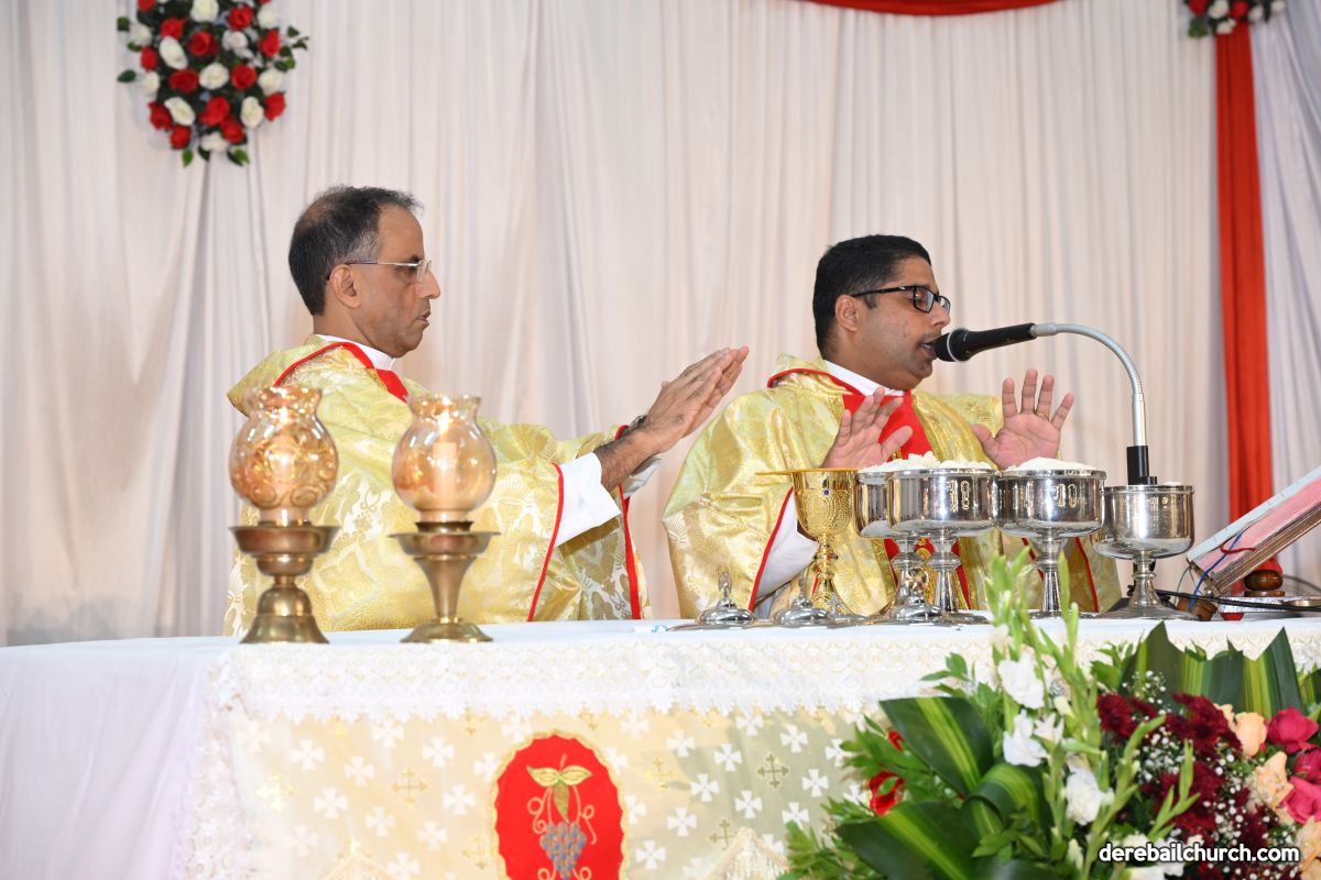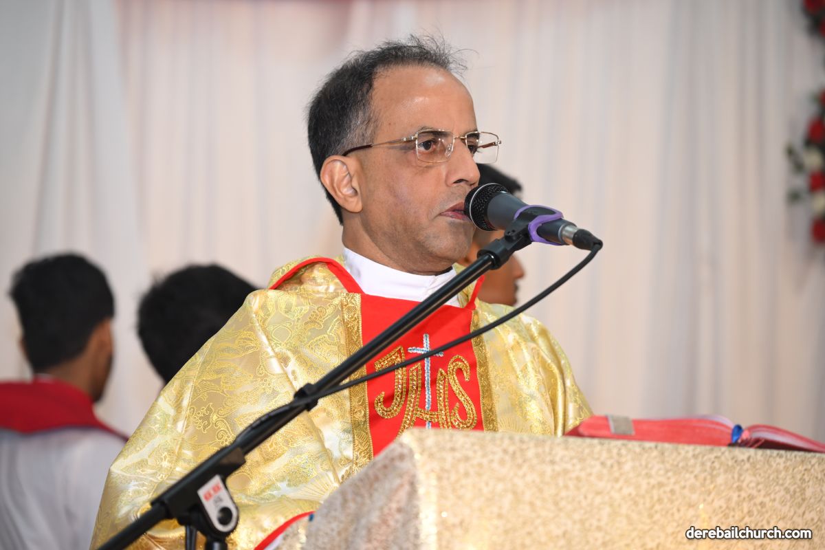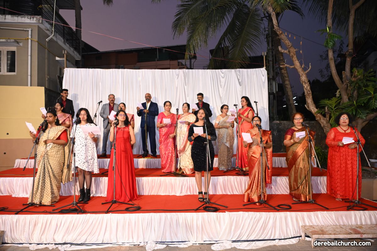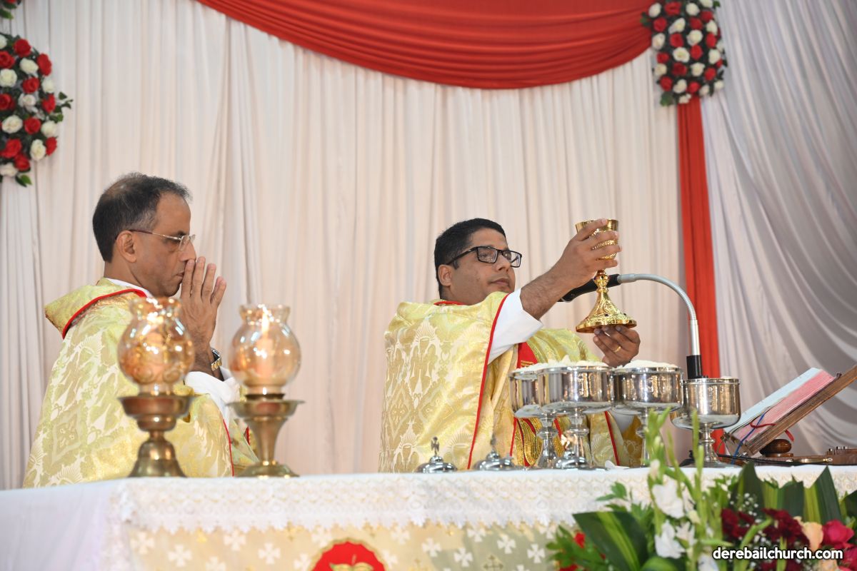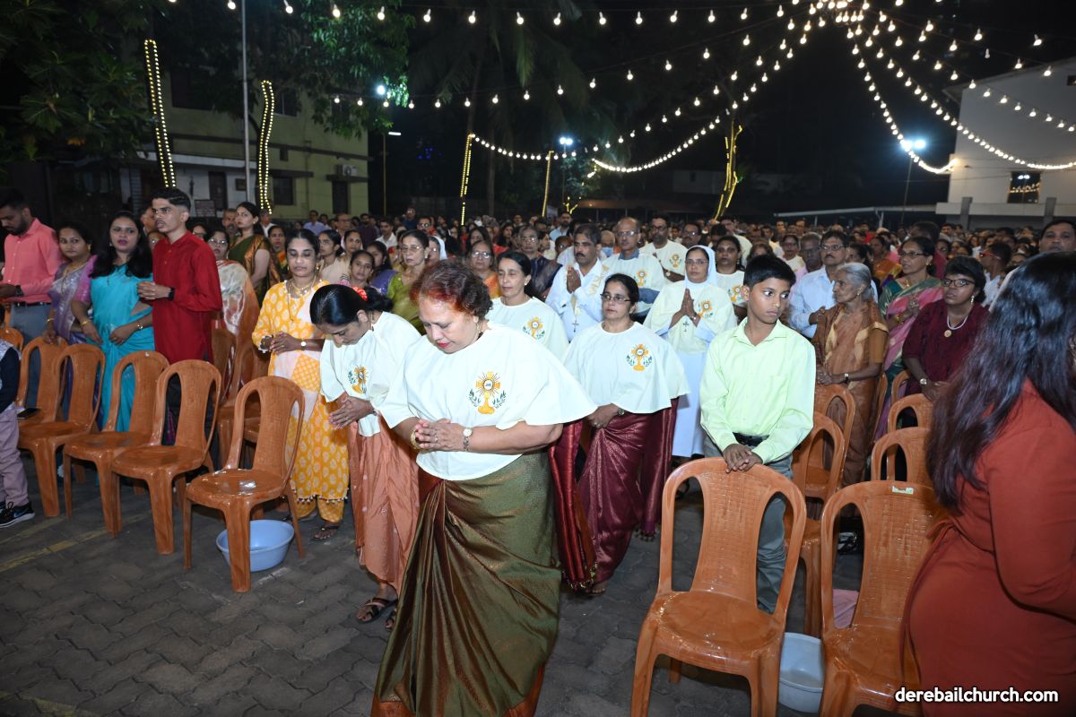 On Christmas Eve 2025, the faithful of Derebail Parish gathered on the church grounds at 6:30 p.m. to celebrate the Holy Eucharist. The ceremony began with a soulful rendition of carols by the senior, youth, and children’s choir. Their collective voices served as a symbolic welcome for the birth of Christ, preparing the liturgy to follow.