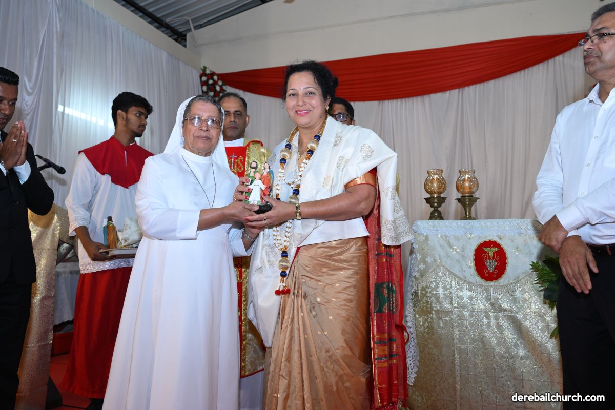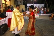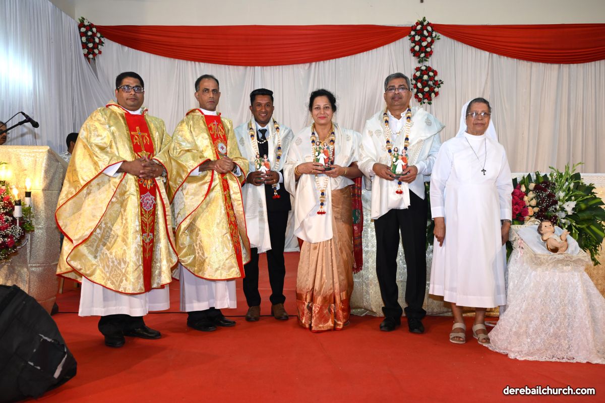 The soulful singing by the children’s choir for the mass deepened the sense of devotion throughout and added to the festivity. The liturgy concluded by revering the statue of baby Jesus. On this occasion, Mrs. Sheela D’Souza and Mr. Denzil Pinto, President and Secretary of the Parish Pastoral Parishad and Mr. Anil Patrao, Coordinator of 21 Commissions were felicitated for their selfless service.