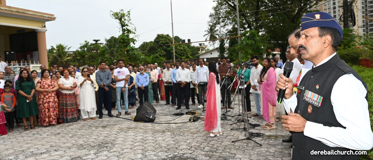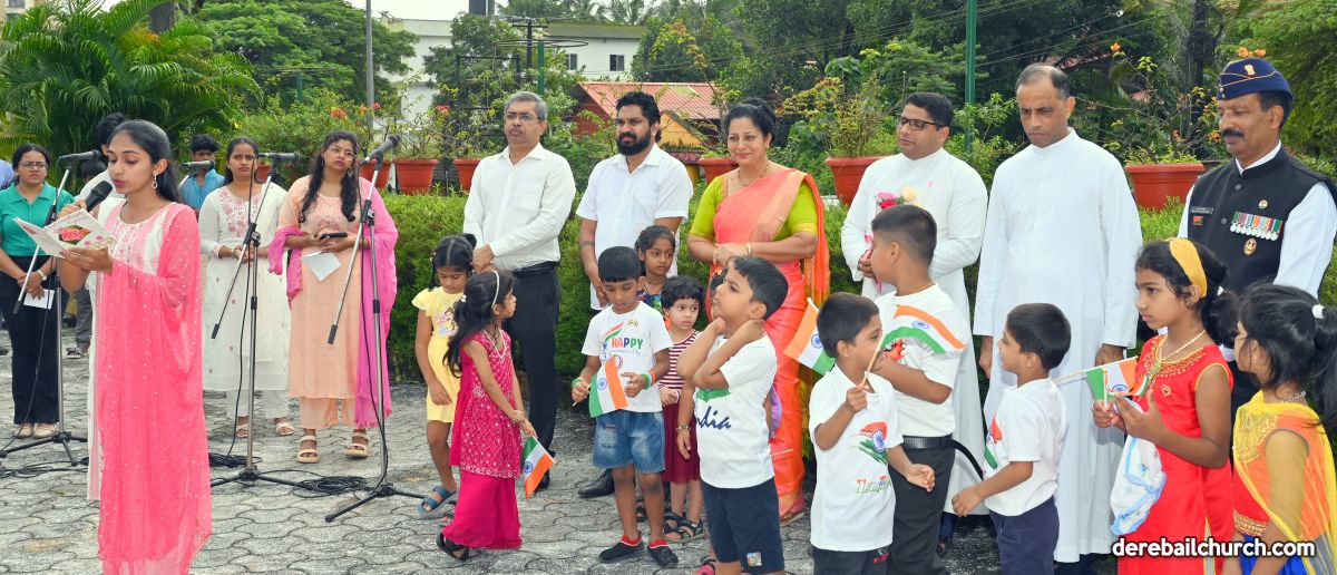 The ceremony began with formalities led by Mr Cherish. Lt Col Gracian Sequeira (Retd) hoisted the national flag, accompanied by the singing of the National Anthem. In his address, he highlighted the struggles and sacrifices of soldiers guarding the nation’s borders. The youth then led a heartfelt rendition of Vande Mataram.
