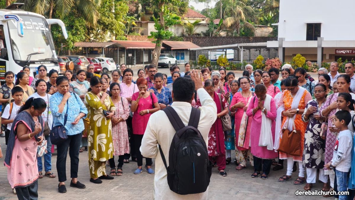 The day began with the parishioners assembling at Derebail church premises at 7:45 AM for a short prayer, invoking God’s blessings for a safe and meaningful journey. At 8:00 AM, they commenced their pilgrimage, travelling in three buses.