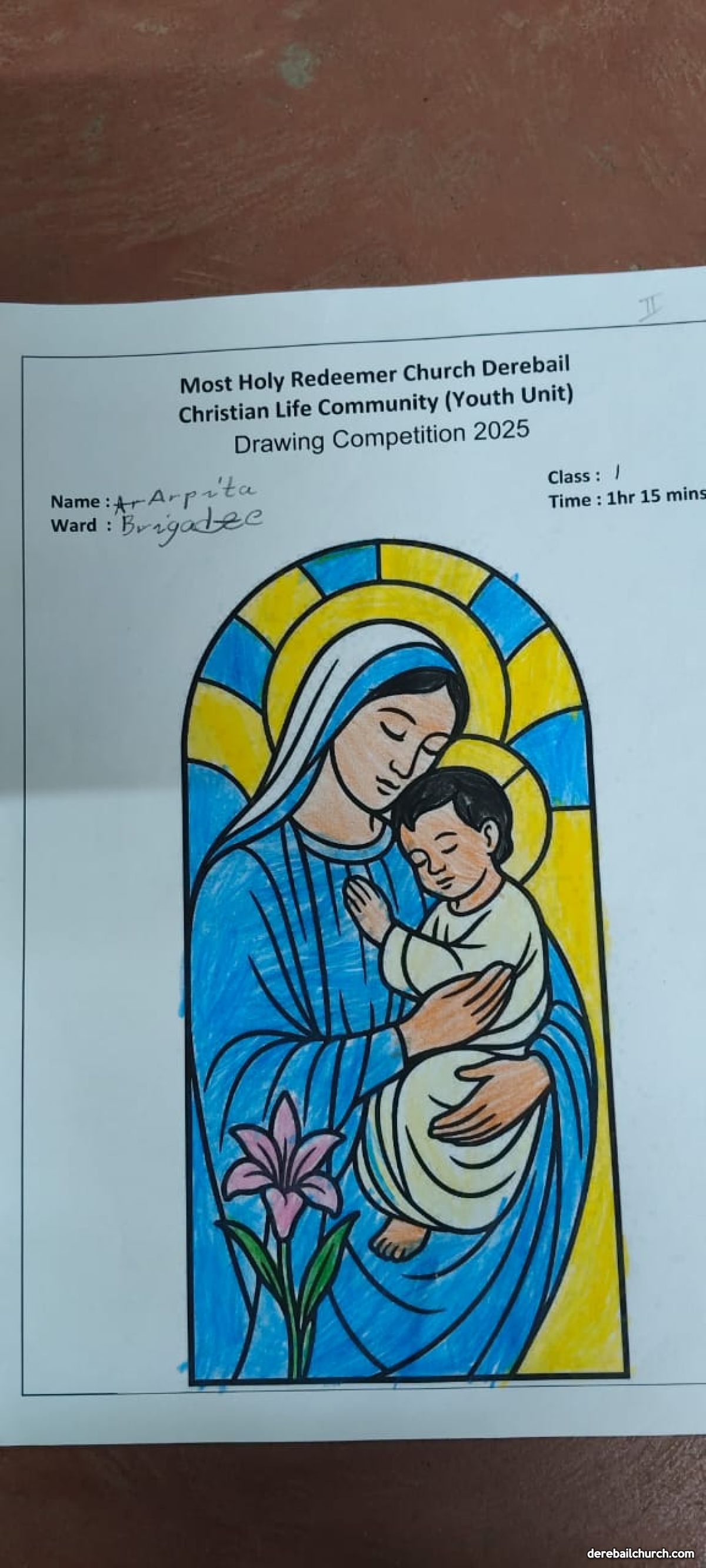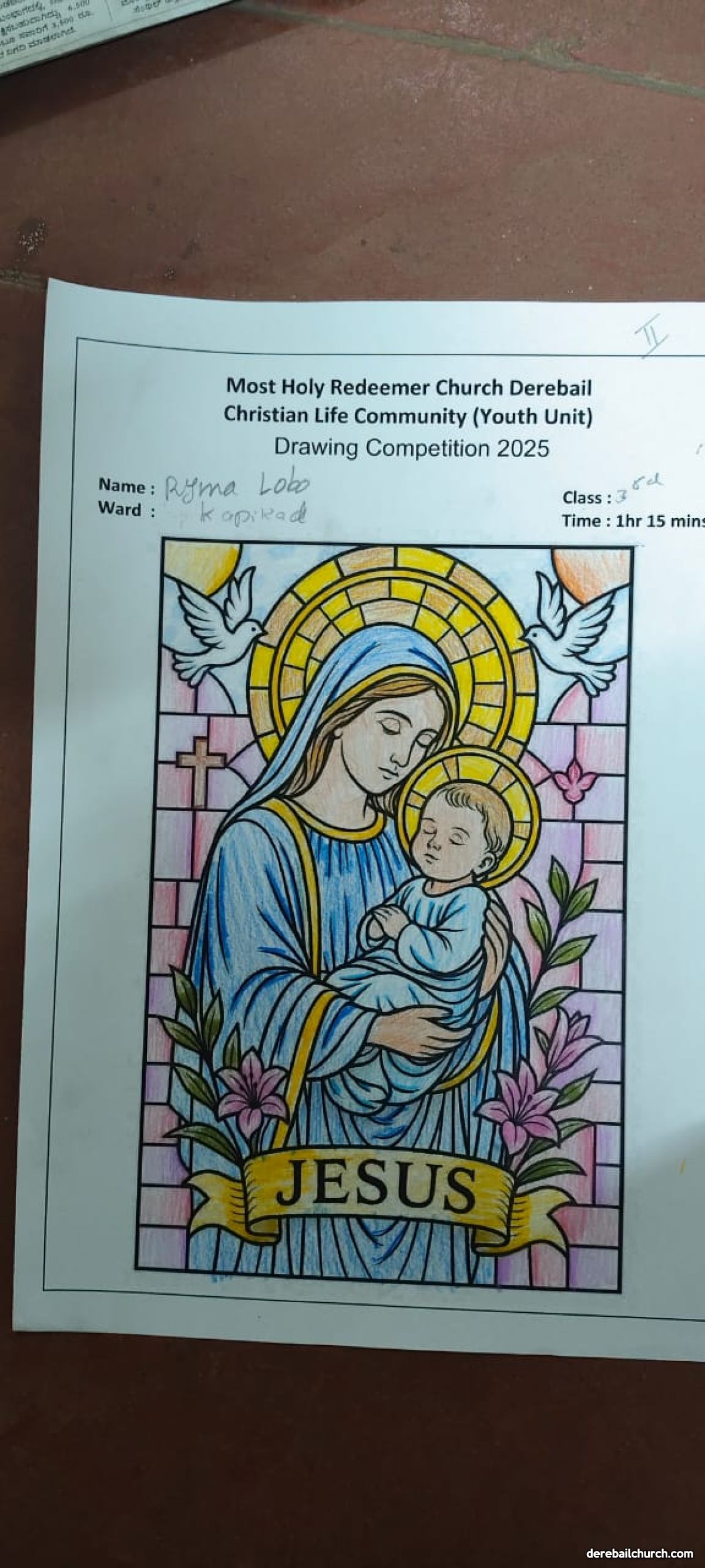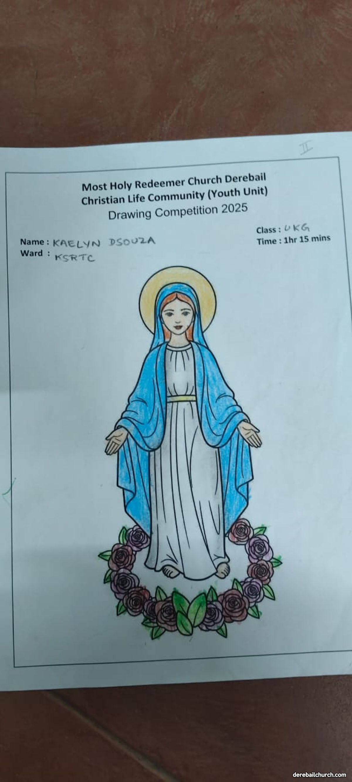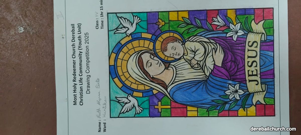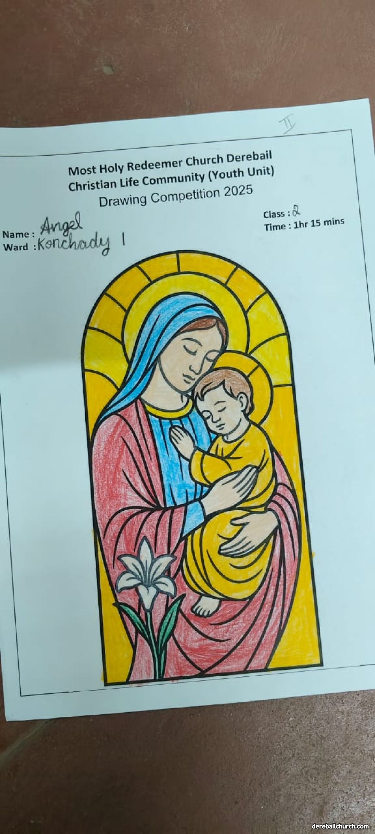 Youth CLC organised Drawing Competition on 30th November 2025 on the theme of Mother Mary and St. Ignatius of Loyola for the children of the Parish from KG to 10th Grade at 10:15 Am at the Parish Basement and Meeting hall. The Parish children participated with great enthusiasm and spirit and showcased their skill, creativity and imagination on art. Special appreciation just be attributed to all the parents for encouraging their children to participate in the competition. Participation certificates for all the participants were handed over on the same day. Winners of the competition will be awarded Prizes on 21st Dec 2025 during the 9.00 AM Mass.
