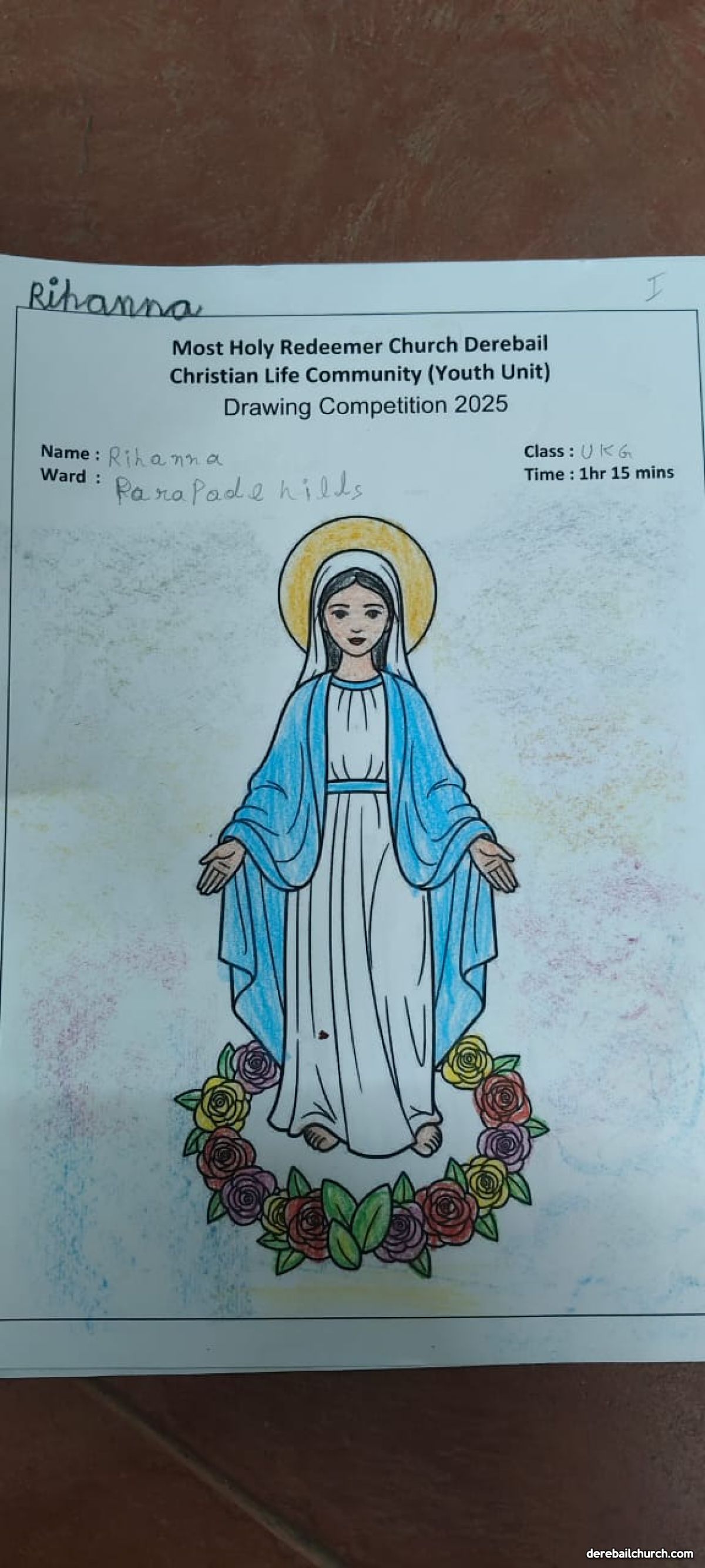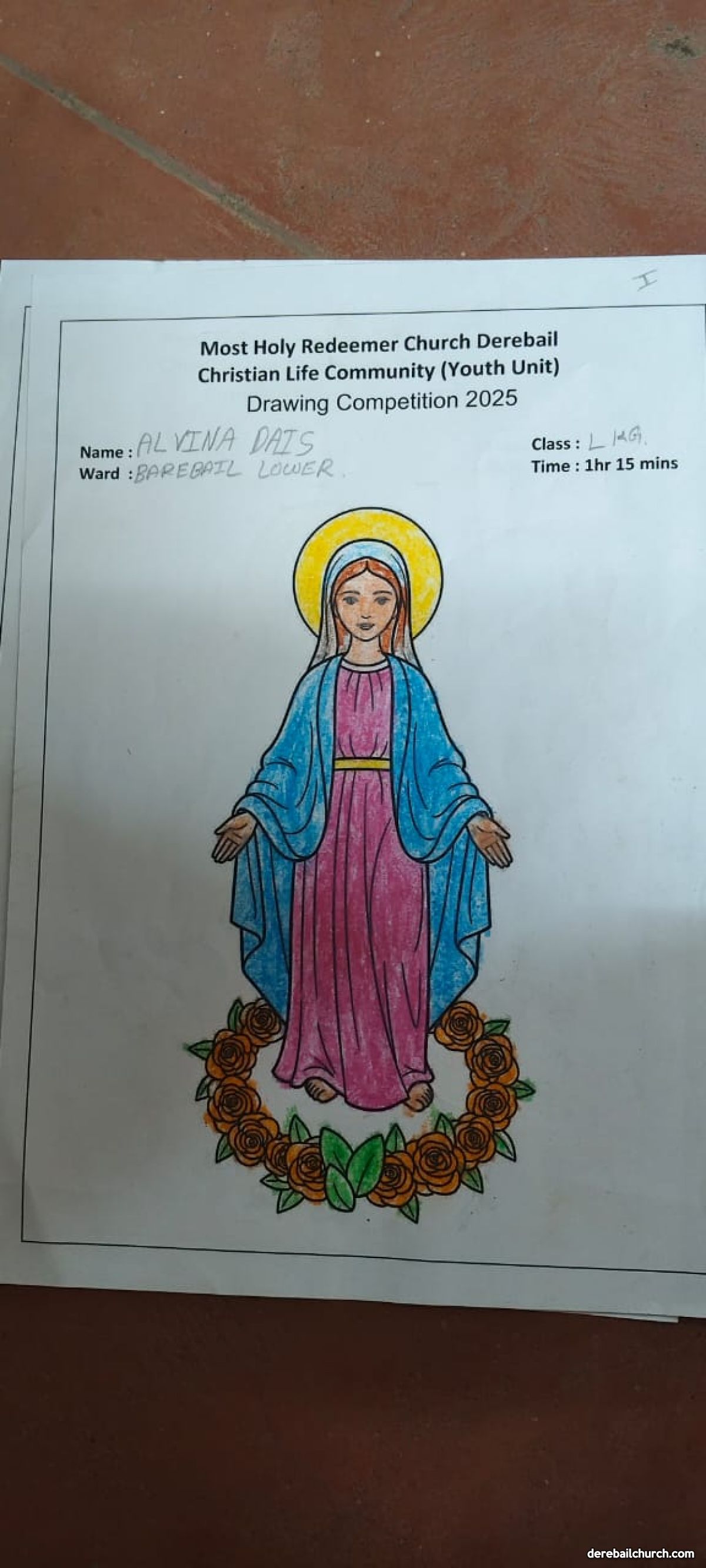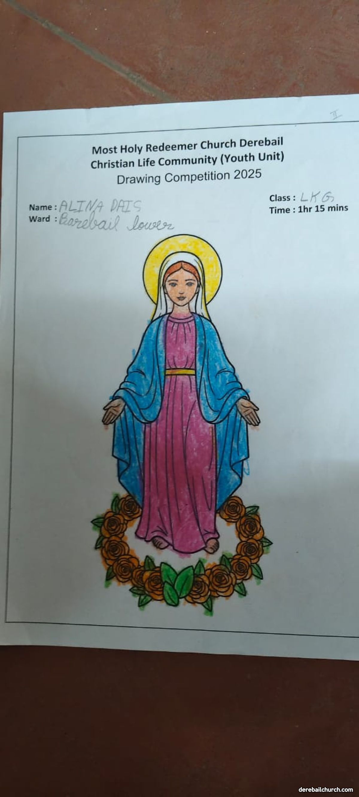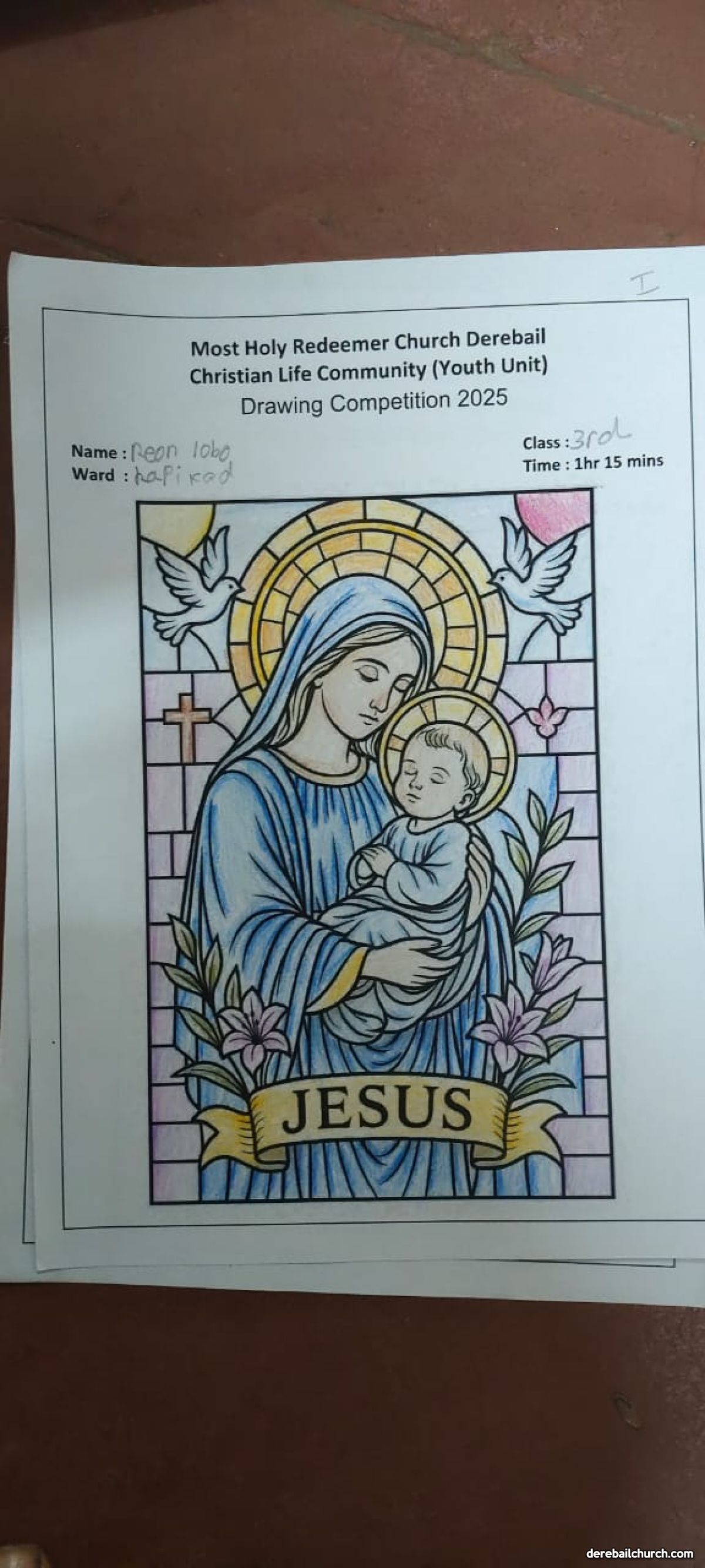 Youth CLC organised Drawing Competition on 30th November 2025 on the theme of Mother Mary and St. Ignatius of Loyola for the children of the Parish from KG to 10th Grade at 10:15 Am at the Parish Basement and Meeting hall. The Parish children participated with great enthusiasm and spirit and showcased their skill, creativity and imagination on art. Special appreciation just be attributed to all the parents for encouraging their children to participate in the competition. Participation certificates for all the participants were handed over on the same day. Winners of the competition will be awarded Prizes on 21st Dec 2025 during the 9.00 AM Mass.